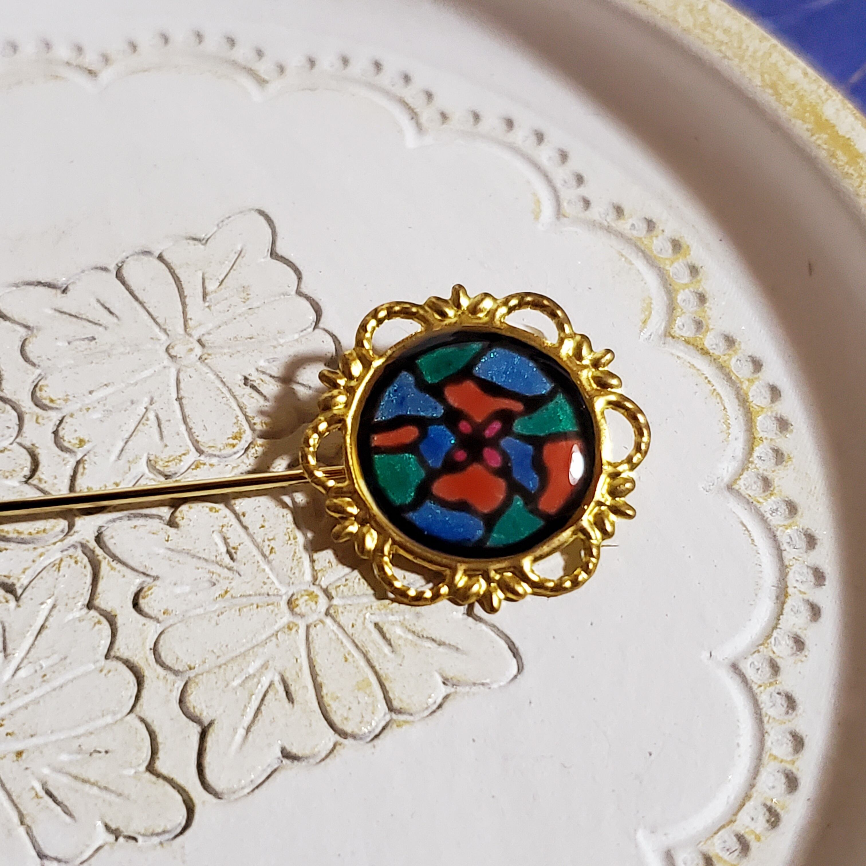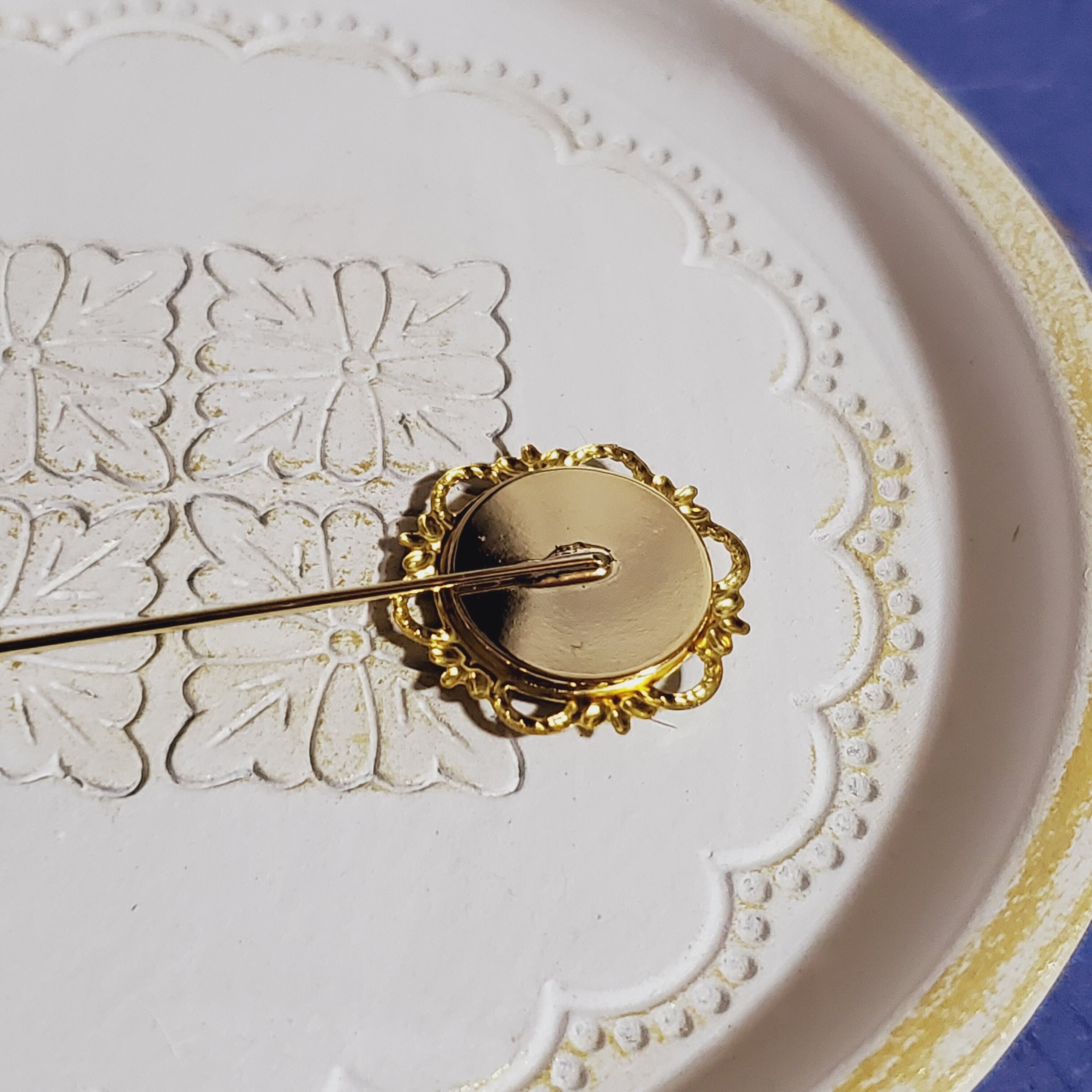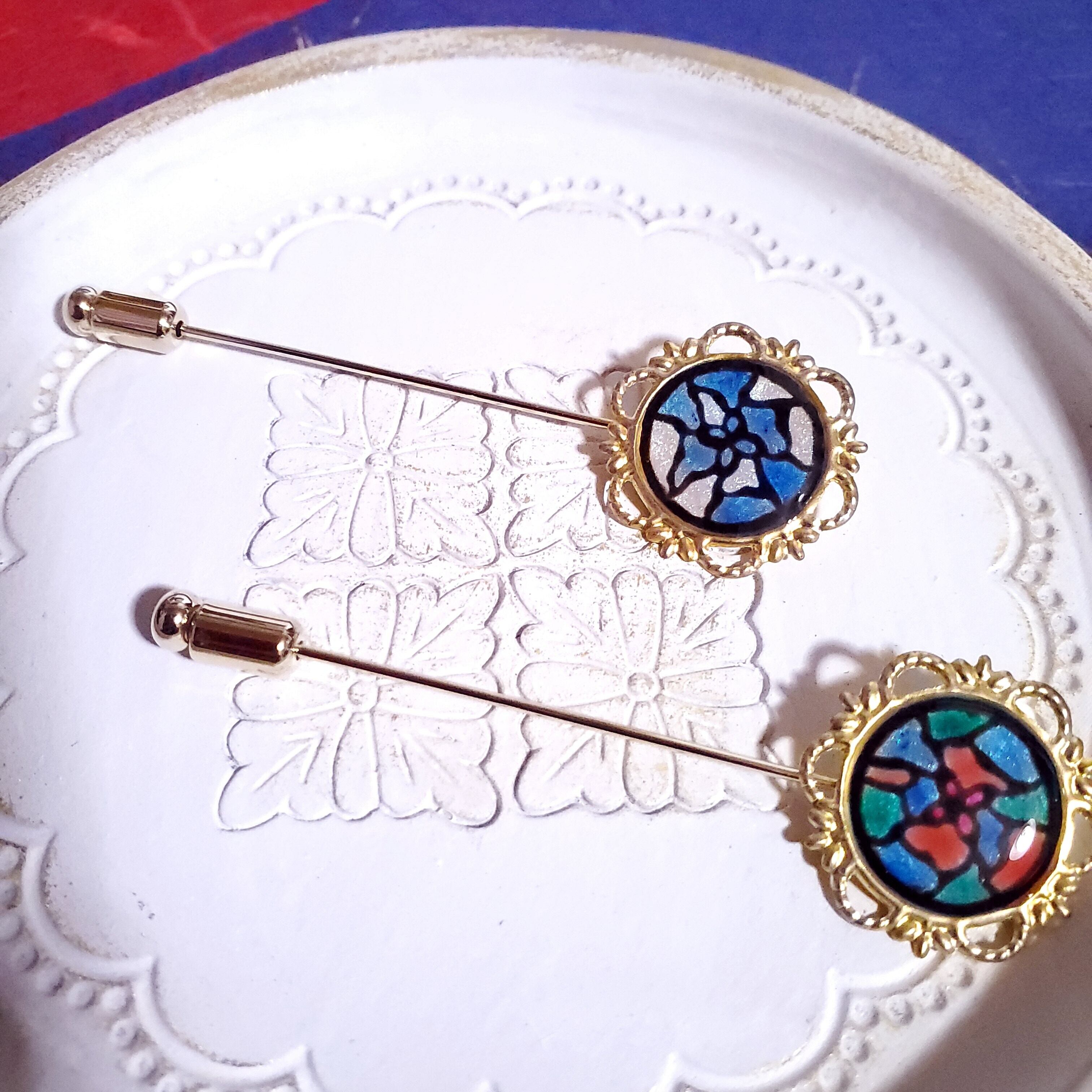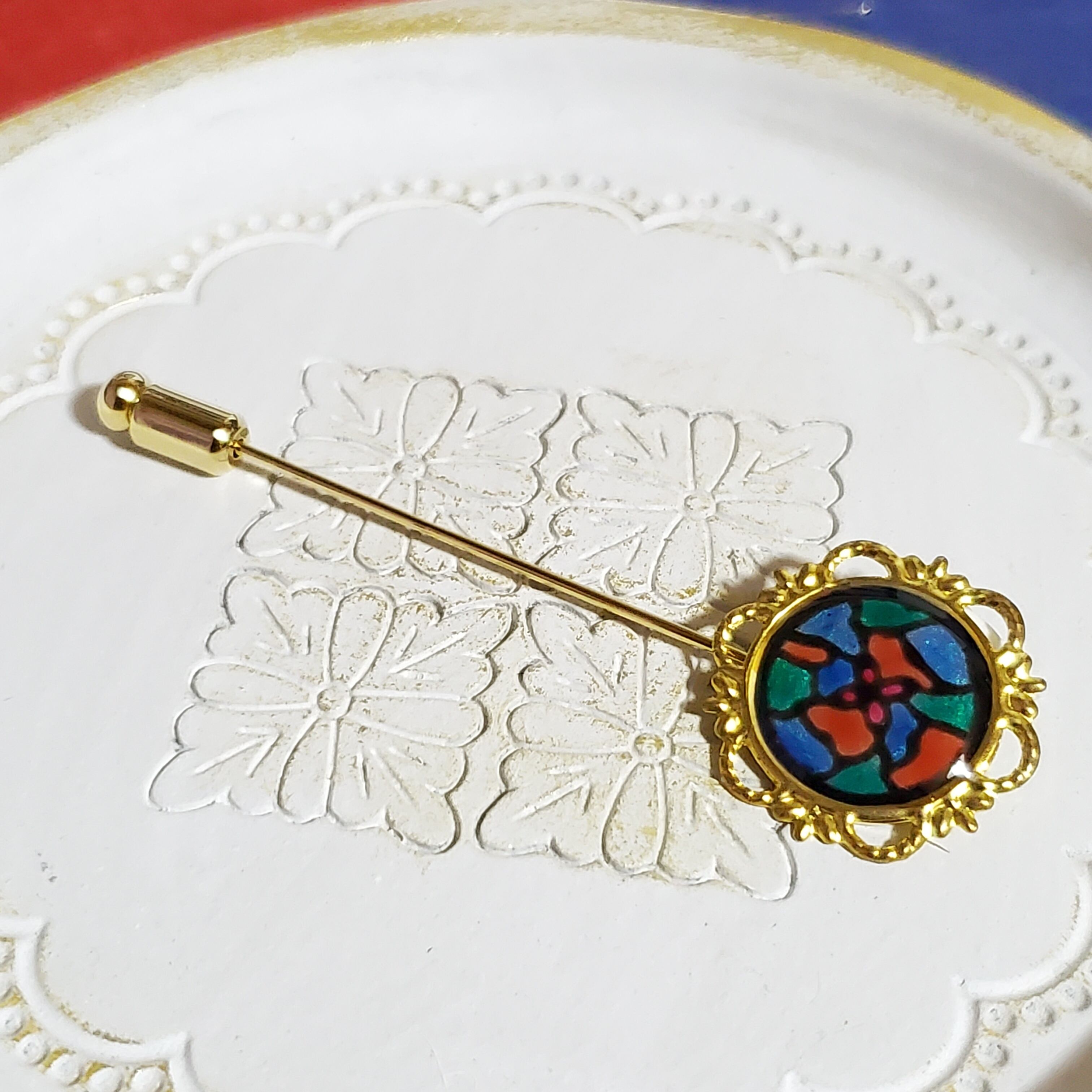 こちらはハットピン、またはラペルピンやスティックピンと呼ばれるアクセサリーです。