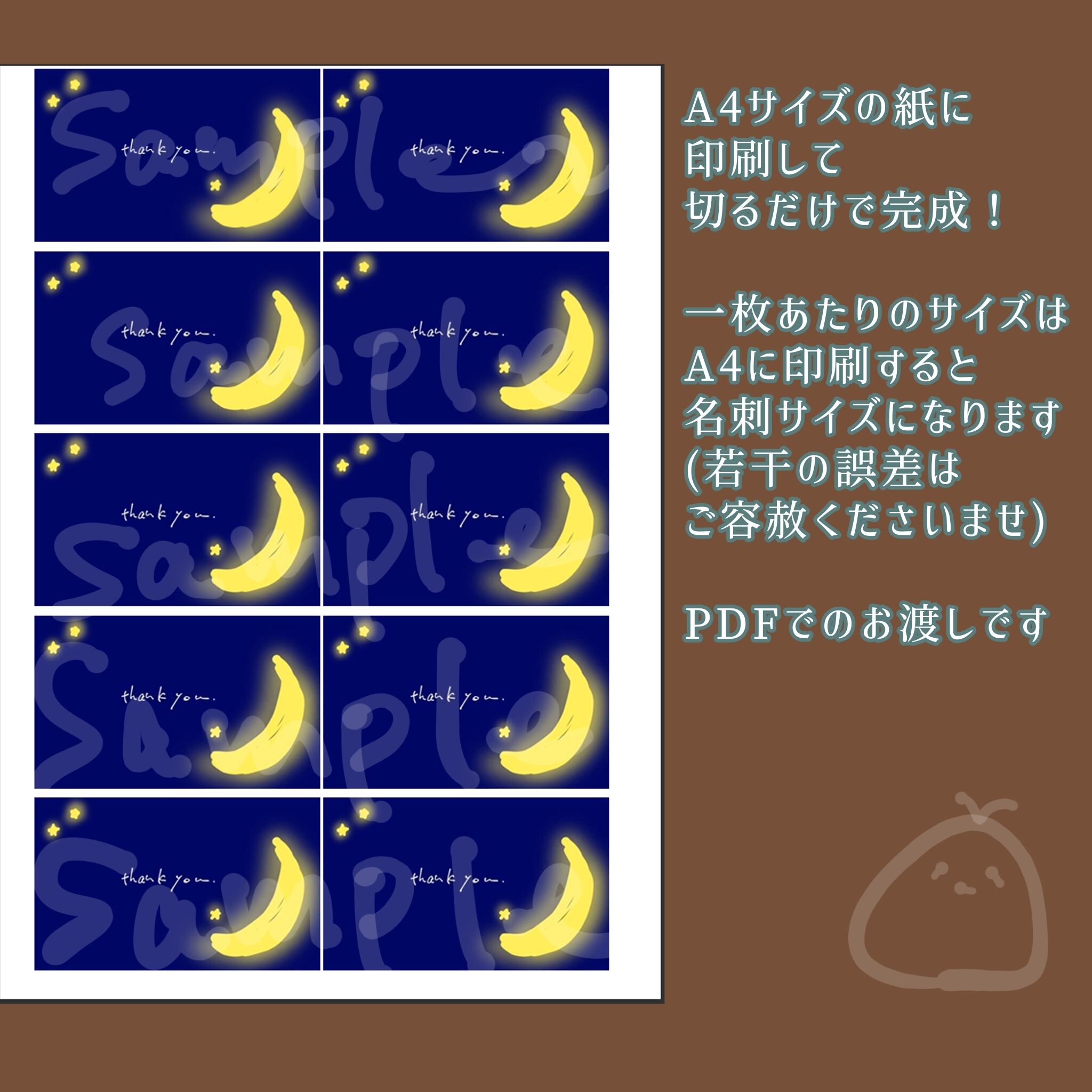 こちらはA4サイズの用紙で印刷して頂くとすぐに名刺サイズのデザイン用紙が10枚分手に入る便利なPDFデータになっております。