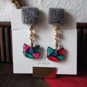 ステンドグラス風ねこさんモチーフ×もふもふのファーのかわいらしいイヤリングです。