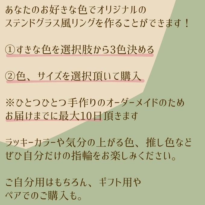 こちらはステンドグラス風リングのオーダー受付ページになります。